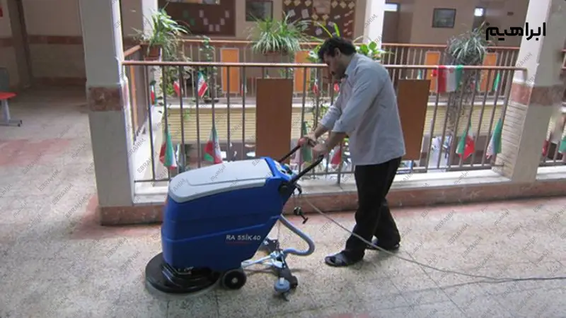 در مقابل دستگاه اسکرابر صنعتی برای نظافت مدارس بزرگ و پرتردد و بخشهایی مانند راهروها، سالنهای ورزشی و تعداد زیاد کلاسها، بهترین انتخاب است. این دستگاه مکانیزه با قدرت بالا، برسهای چرخشی و مکندههای قوی، همزمان عملیات شستشو و خشککردن سطوح کف مدرسه را انجام میدهد.