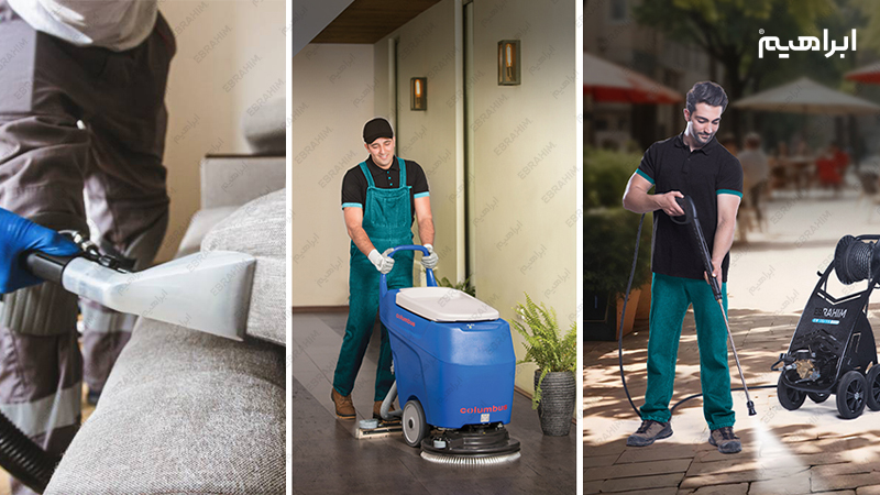 از جمله تجهیزات نظافتی که از مواد شوینده صنعتی استفاده میکننده عبارتند از: