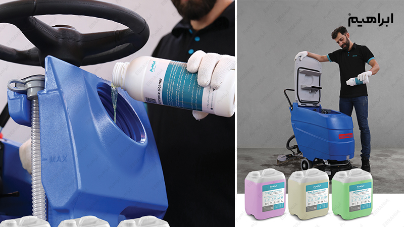 استفاده از فیلترهای مناسب و برسهای نرم در این دستگاهها، اطمینان میدهد که به سطح مقاوم اپوکسی آسیبی وارد نمیشود. به طور کلی، روش مکانیزه یک راه حل بهینه برای نگهداری و نظافت منظم کفپوش اپوکسی در مقیاسهای بزرگ و با نیاز به سرعت و کیفیت بالاست. در ادامه به برخی از متداولترین تجهیزات مکانیزه نظافت کفپوش اپوکسی میپردازیم.