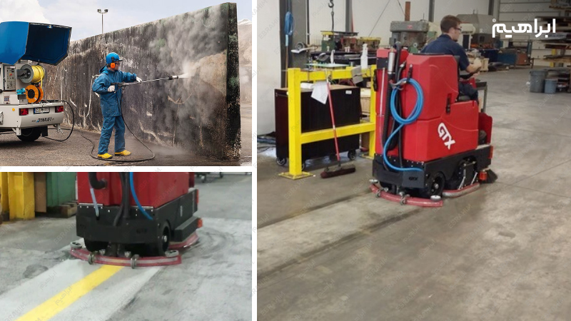 - کف کارخانه: حذف لکههای سیمان، روغن و سایر آلودگیها از کف کارخانه، باعث ایجاد محیطی تمیز و ایمن میشود.