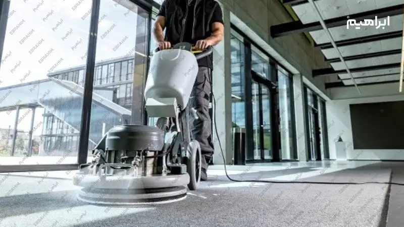 - شستشوی اولیه: با استفاده از برس اسکرابر، سطح کف را به طور کامل شستشو دهید.