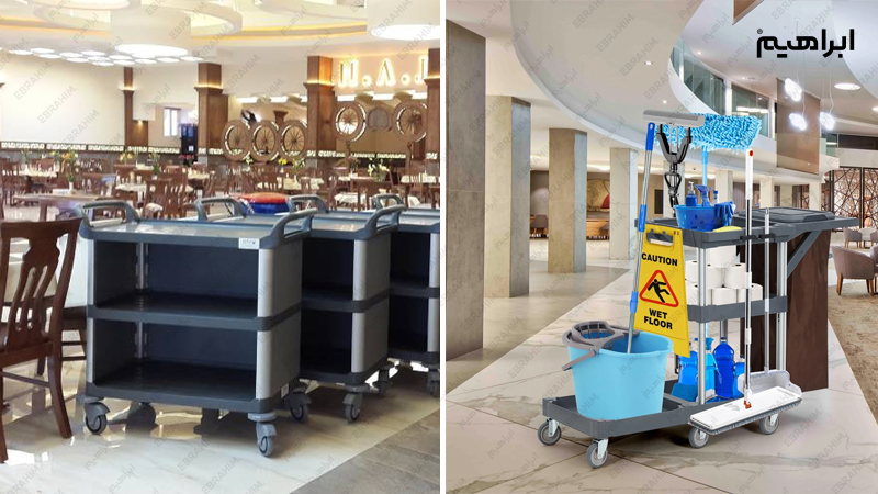این ابزارها با ساماندهی لوازم، سرعت و کارایی نظافت دستی را بهبود میبخشند اما به تنهایی برای پاکسازی عمیق و وسیع کفپوشها یا سطوح بزرگ کافی نیستند. لازم به ذکر است که نوع دیگری از ترولیها وجود دارد که با عنوان ترولی پذیرایی شناخته میشود و به وفور در تالارها برای سرو و حمل غذا و نوشیدنی به مهمانان، نقشی حیاتی در امر پذیرایی ایفا میکند و کاربردی کاملاً متفاوت از ترولیهای نظافتی دارد.