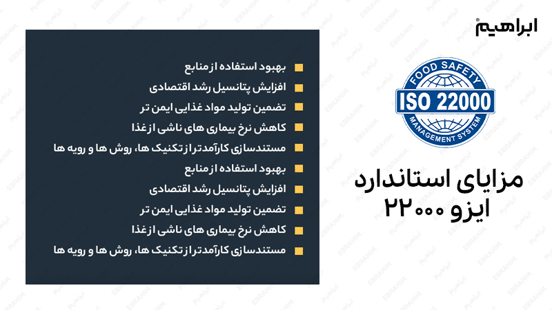 شرکت ابراهیم دارنده استاندارد ایزو ۲۲۰۰۰ و تجهیزات لازم برای اخذ آن