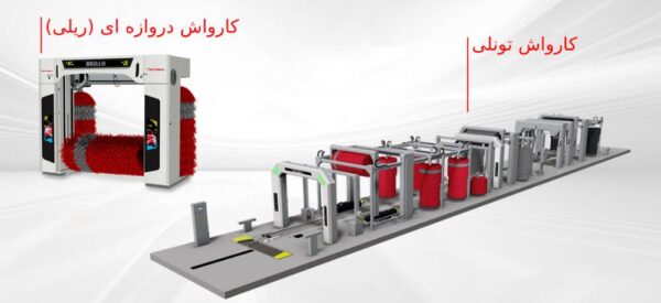 - نوار نقاله یا سیستم هدایت خودرو (Conveyor Belt or Vehicle Guiding System): در کارواشهای تونلی، یک نوار نقاله یا سیستم ریلی وجود دارد که خودرو را به آرامی و به صورت خودکار از میان مراحل مختلف شستن ماشین عبور میدهد. در کارواشهای دروازهای، بازوهای متحرک تجهیزات شستشو در اطراف خودرو ثابت حرکت میکنند.
