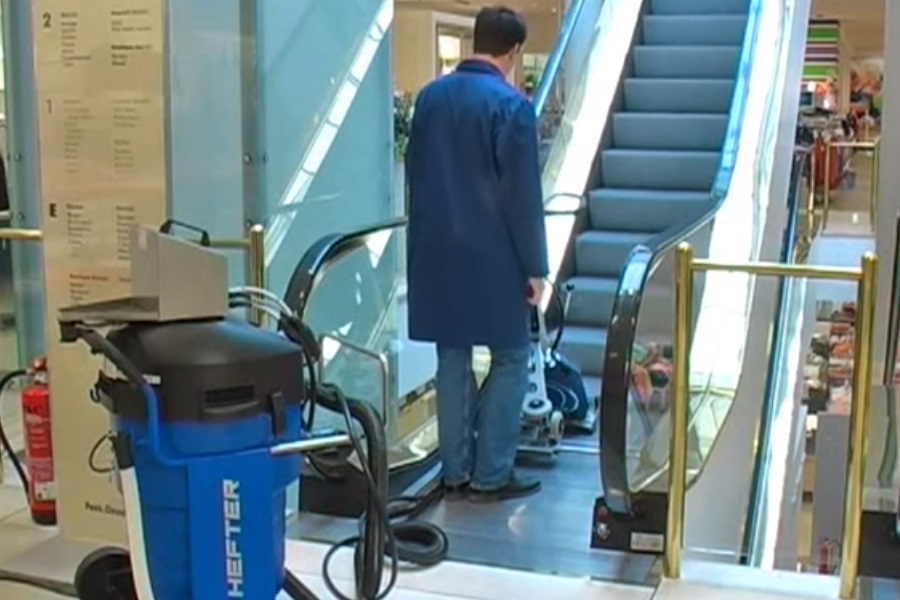 شستن پله برقی با دستگاه پله برقی شوی مکانیزه
