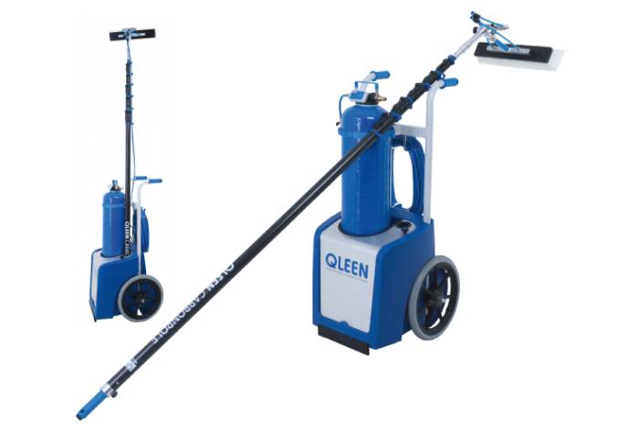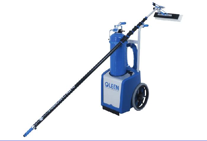 دستگاه نماشوی Qleen Purastart یک دستگاه مناسب و کارآمد به منظور شستشوی شیشه ها و نماهای بیرونی می باشد. این دستگاه با توجه به این نکته طراحی شده است که آب خالص و بدون املاح معدنی به دلیل ویژگی های فیزیکی که دارد، شویندگی بهتری نسبت به آب معمولی خواهد داشت. در نتیجه آلودگی نماها از جمله گرد و خاک و فضولات پرندگان را به راحتی در خود حل کرده و سطح را پاک می نماید. در این دستگاه از یک مخزن 25 لیتری حاوی بستر رزین برای حذف مواد معدنی (مانند کلسیم و منیزیم) استفاده شده است.