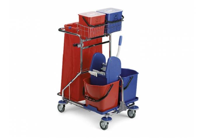 - چندین محفظه و قفسه برای نگهداری انواع مختلف مواد شوینده، ابزار نظافتی، کیسه زباله و سایر لوازم مورد نیاز نظافت