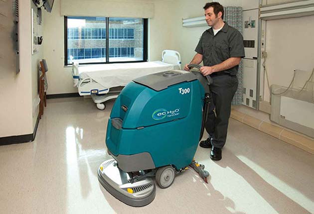 T300e-600 walk-behind scrubber drier is an efficient floor cleaning machine which provides high quality cleaning, is cost-efficient, improves hygiene, and prepares a safe environment, is manufactured by Tennant company. A cleaning width of 60 cm, a solution tank with a capacity of 42 liters, and a recovery tank with a capacity of 53 liters, and being equipped with 2 rotating brushes have all resulted in a high quality, safe, cost-efficient, and time- saving cleaning. This is a battery-operated machine with great maneuverability.