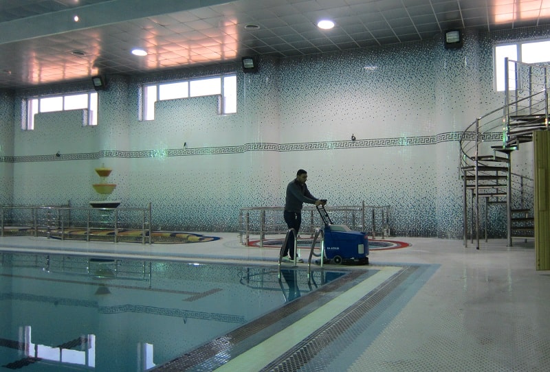 - تمیزکاری باشگاهها و فضاهای ورزشی: کف شوی صنعتی باتری دار RA43B20 برای شستشوی سالنها و فضاهای ورزشی با رفت و آمد زیاد نیز مناسب است. توانایی جمعآوری کامل آب و مواد شوینده و خشک کردن سریع سطح، ایجاد کف ایمن و کاهش خطر لغزش ورزشکاران و کارکنان را تضمین میکند. همچنین، طراحی جمعوجور و قدرت مانور بالا این امکان را میدهد که اسکرابر صنعتی RA43B20 در بین تجهیزات ورزشی، مسیرهای باریک و گوشهها به راحتی حرکت کرده و تمام سطوح را پوشش دهد.
