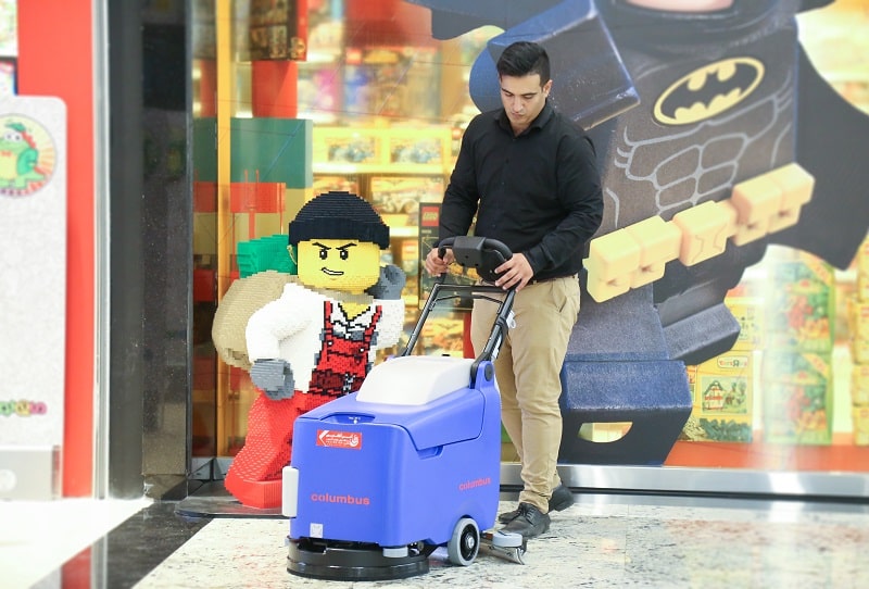 - تمیزکاری راهروها و معابر مراکز خرید و فروشگاهها: با توجه به قدرت مانور بالا و طراحی جمعوجور اسکرابر دستی باتری دار RA43B20، این دستگاه قادر است راهروهای پرتردد مراکز خرید، فروشگاههای زنجیرهای و مجتمعهای تجاری را به راحتی شستشو دهد. امکان عبور آسان از بین موانع مانند قفسهها، میزها و صندلیها، فرآیند نظافت را سریع و بدون وقفه میسازد. این ویژگی در اسکرابر صنعتی RA43B20 باعث میشود که سطح کف به شکل یکنواخت تمیز شده و ظاهر محیط تجاری برای مشتریان همیشه مرتب و بهداشتی باقی بماند.