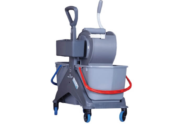 • OneFred cleaning trolley is equipped with two 25 liter buckets, for clean water and cleaning T rinse. Separating the cleaning solution tanks from the water collected from the ground will enable better cleaning results, better hygiene, save on detergents and reduce cleaning time with the least difficulty for the workforce.