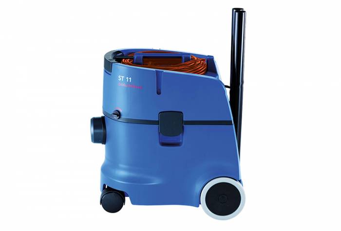 جاروبرقی st11 یک جاروی تجاری با طراحی بی نظیر و مخزن 11 لیتری است که برای جمع آوری گرد و خاک و زباله های خشک مورد استفاده قرار می گیرد. این جارو دارای ابعاد جمع جور و سطح صدای پایینی می باشد بنابراین جهت نظافت روزانه محیط های تجاری و اداری ابزاری مناسب به شمار می آید. جاروبرقی تجاری برای نظافت انواع سطوح پوشیده شده از فرش و موکت، سطوح سنگی و سرامیکی و دیگر سطوح سخت به کار می رود. ساختار جاروی تجاری به گونه ای است که مرکز ثقل در قسمت پایین آن قرار گرفته که سبب حفظ تعادل دستگاه می شود، هم چنین در قسمت عقب جاروبرقی دو چرخ بزرگ و در قسمت جلوی جارو دو چرخ کوچک گردان قرار دارد که موجب سهولت در حرکت دستگاه شده است.