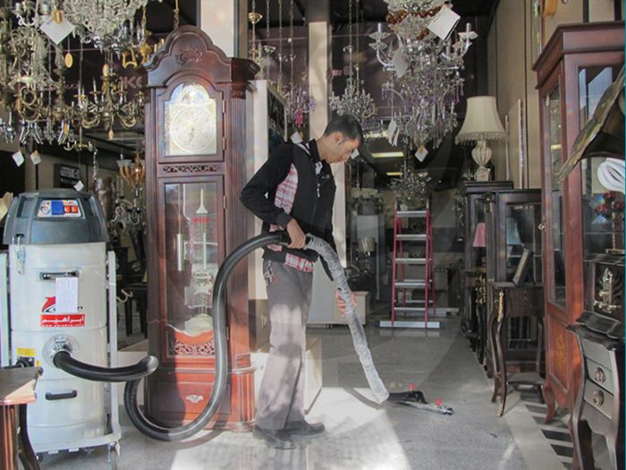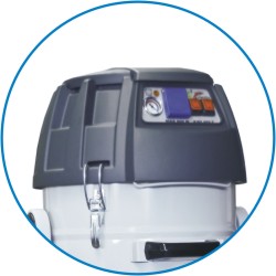 بر روی بدن جارو برقی اهرم هایی تعبیه شده که با جا به جا کردن آن ها مخزن از دستگاه جدا شده و با سهولت تخلیه می گردد. مخزن جاروبرقی نیمه صنعتی بر روی چهار چرخ مستقل و مقاوم قرار گرفته امکان جا به جایی آسان دستگاه را فراهم می آورد و به منظور ثابت نگه داشتن جاروبرقی در یک مکان مشخص امکان قفل کردن چرخ های دستگاه وجود دارد.