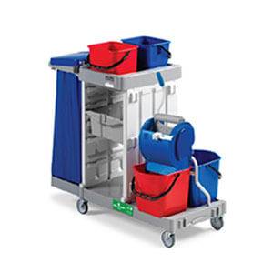 A multi purpose trolley clean and dirty water tanks are completely separated from each other and contaminated water will not reach into clean water tank at all. Some of these multi purpose trolleys have roller wringer and others have the press wringer. Holders of garbage bags, trash containers which are equipped with doors and door closer, small plastic buckets to carry and store cleaning equipment including various sectors are versatile multi purpose trolley, some of them also have a drawer and lockable cabinets to keep items that are used in various environments.