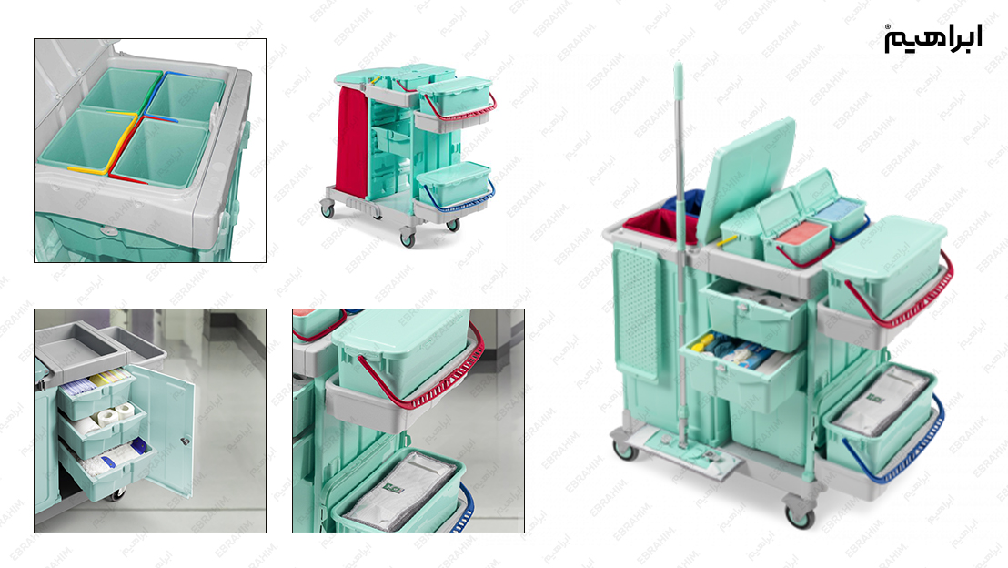 - حمل و نقل مواد نظافتی: ترولیهای نظافتی با داشتن محفظههای جداگانه برای نگهداری مواد شوینده، ضدعفونیکنندهها، دستمالها و سایر لوازم نظافتی، به پرسنل کمک میکنند تا به سرعت و به راحتی به مواد مورد نیاز خود دسترسی پیدا کنند.